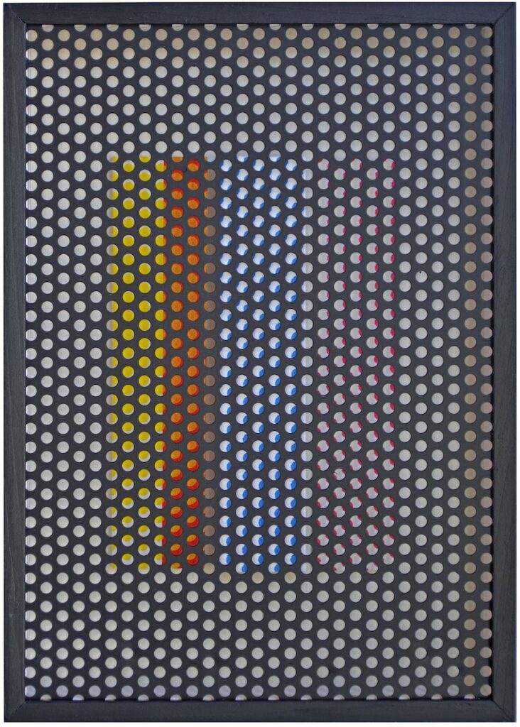 An exhibition with work by Michael Bom Michael Bom makes optical kinetic installations, screen prints and paintings. His works arise from shapes, rhythms and movements that he observes in nature and are reduced to the essential. “It is not a representation of nature that I am trying to achieve, but an energy and force that I feel and is part of our subconscious.” This exhibition features two works in which color and movement predominate. With this minimal representation of overlapping dots he invites the viewer to an active and to play a dynamic role in experiencing the work.